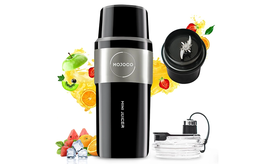 Mojoco Personal Smoothie Blender – Vacuum Insulated Blender for Fruits and Vegetables – Rechargeable Portable Blenders with Stainless Steel Blade for Travel, Camping, Gym(Black)